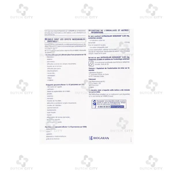 **Product line: Alprazolam BIOGARAN is produced by Biogaran, a French company specializing in generic medicines.